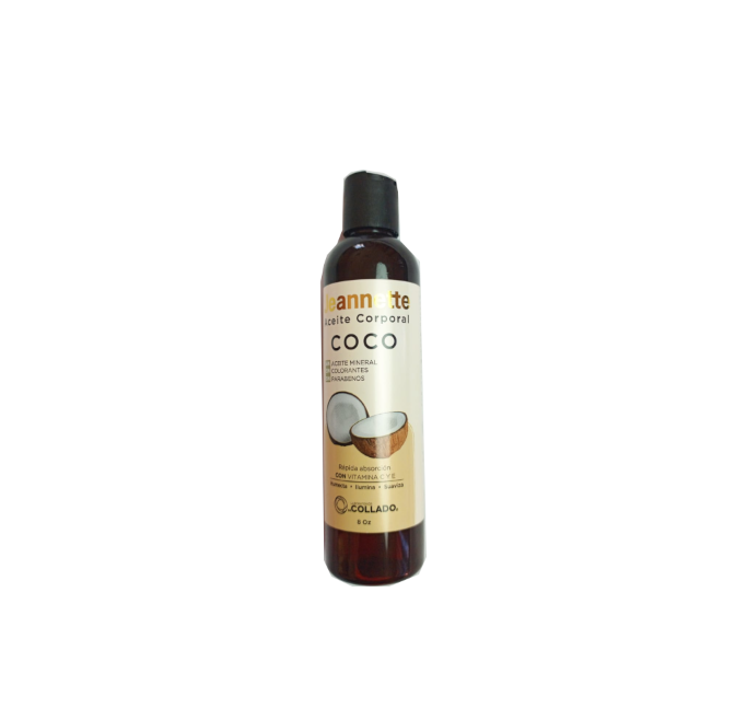 El aceite corporal Jeannette Coco nutre la piel profundamente gracias a su fórmula enriquecida con aceite de coco natural, dejando una suavidad sedosa y un brillo saludable. Su textura ligera se absorbe rápido sin dejar sensación grasosa, mientras su aroma tropical aporta una frescura relajante. Ideal para hidratar a diario y restaurar la luminosidad natural de la piel.