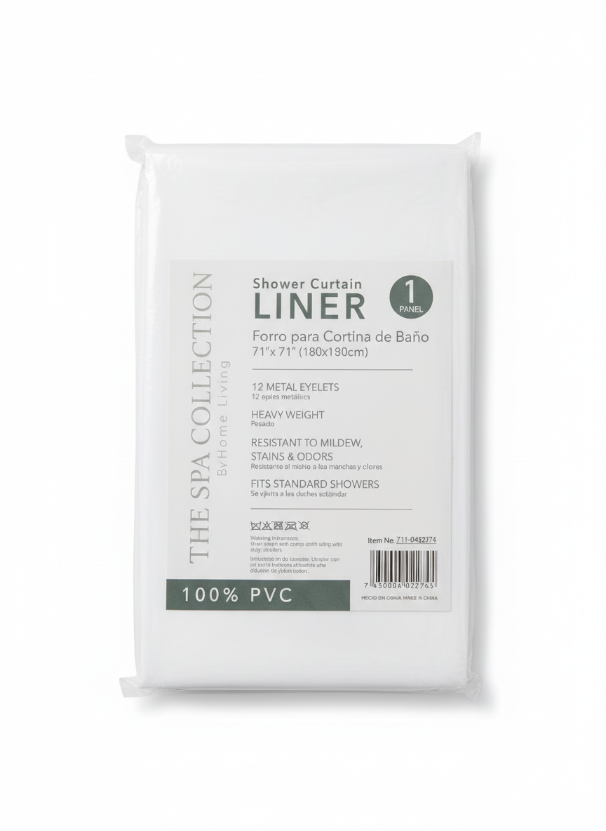 Forro para cortina de baño The Spa Collection, fabricado en material resistente y de secado rápido. Diseñado para proteger la cortina exterior y evitar salpicaduras, cuenta con ojales reforzados para mayor durabilidad. Ideal para mantener tu baño fresco, limpio y con estilo tipo spa.