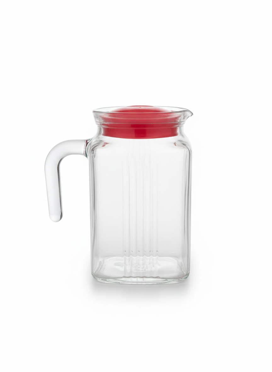 Jarra de vidrio transparente, resistente y de diseño elegante, ideal para servir agua, jugos o bebidas frías en cualquier ocasión. Su asa ergonómica y pico vertedor facilitan un uso cómodo y seguro. Perfecta para el hogar o para reuniones especiales.