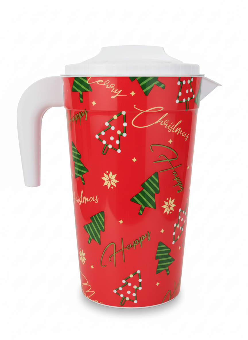 Jarrón plástico estilo navideño, ligero y resistente, decorado con motivos festivos que añaden un toque cálido y alegre a cualquier espacio. Ideal para arreglos florales, centros de mesa o decorar el hogar durante la temporada navideña.