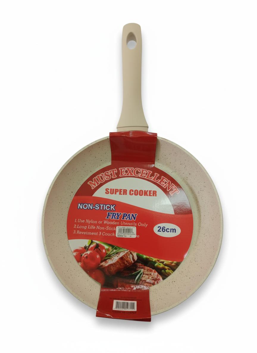 El sartén antiadherente Super Cooker de 26 cm ofrece una cocción rápida y uniforme gracias a su superficie de alta resistencia que evita que los alimentos se peguen. Su diseño ligero y ergonómico facilita el manejo diario, mientras que su base estable distribuye el calor de forma eficiente. Ideal para freír, saltear o preparar tus recetas favoritas con menos aceite y mejores resultados.