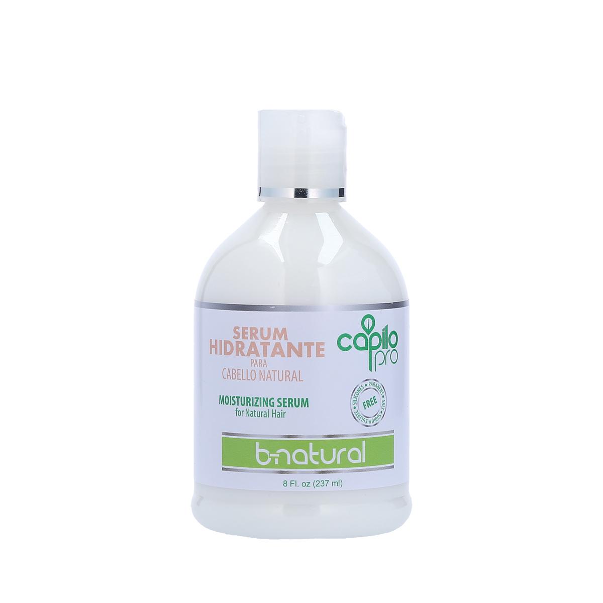 El sérum hidratante Capilo Pro B-Natural nutre profundamente el cabello natural, aportando suavidad, brillo y definición sin dejar sensación pesada. Su fórmula ligera ayuda a controlar el frizz, sellar la humedad y revitalizar cada hebra, dejando el pelo más manejable y saludable durante todo el día. Ideal para resaltar la belleza natural de tu melena.