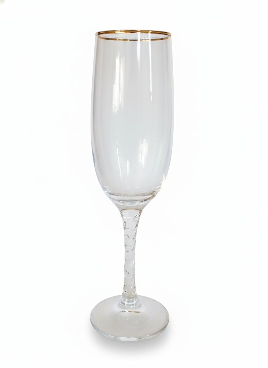 Copa de champagne de cristal fino, diseñada con un cáliz estilizado que realza el aroma y las burbujas. Elegante, ligera y perfecta para celebraciones, brindis y ocasiones especiales.