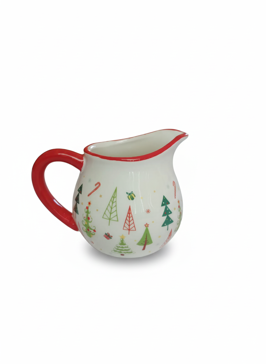 La jarra de crema de cerámica blanca con adornos navideños aporta un toque encantador y festivo a tu mesa. Su diseño delicado y acabado elegante la hacen perfecta para servir crema, leche o salsas durante la temporada navideña. Resistente, decorativa y práctica, es el detalle ideal para complementar tus reuniones familiares y dar calidez a cada ocasión.